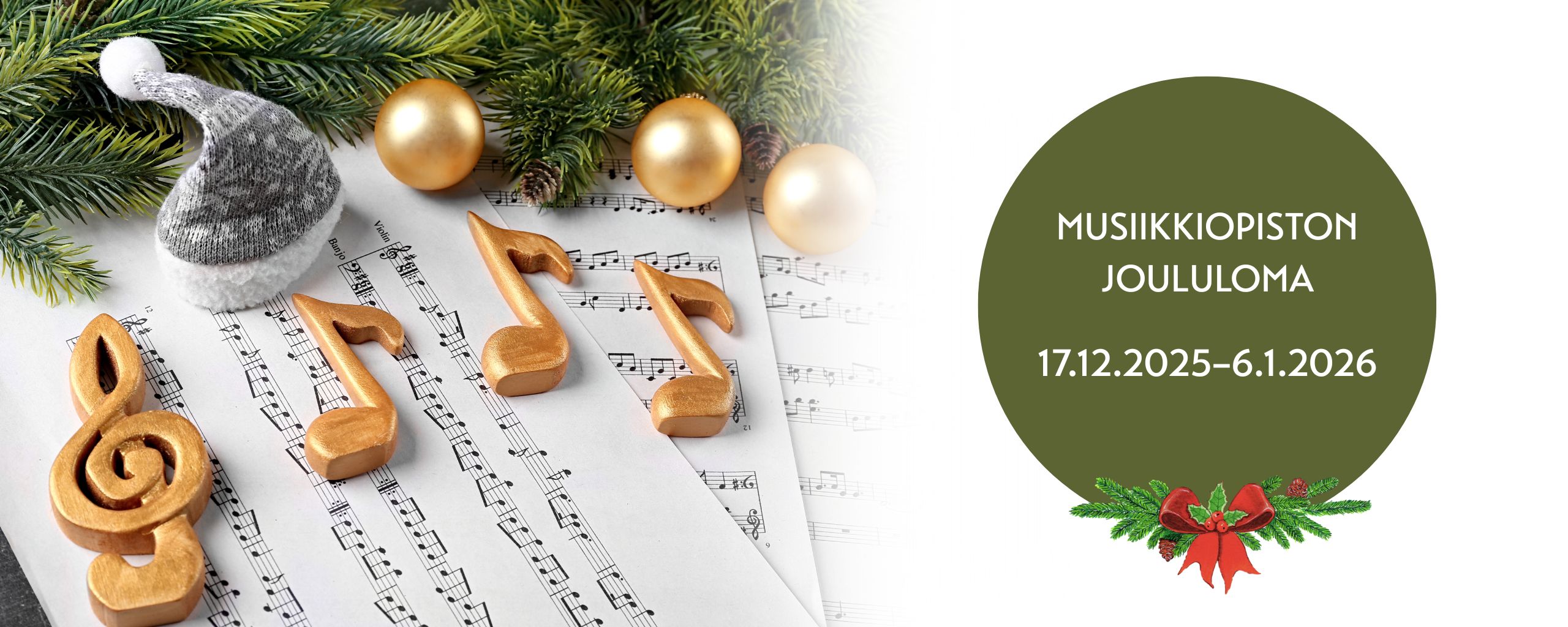 Luoteis-Helsingin musiikkiopistossa vietetään joululomaa 17.12.2025–6.1.2026.